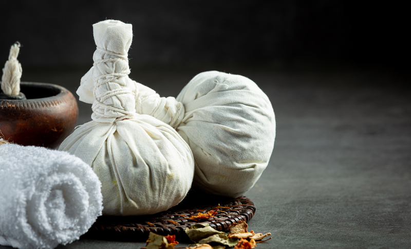 Herbal poultices are applied to relieve pain, inflammation, stiffness, and improve muscle strength.