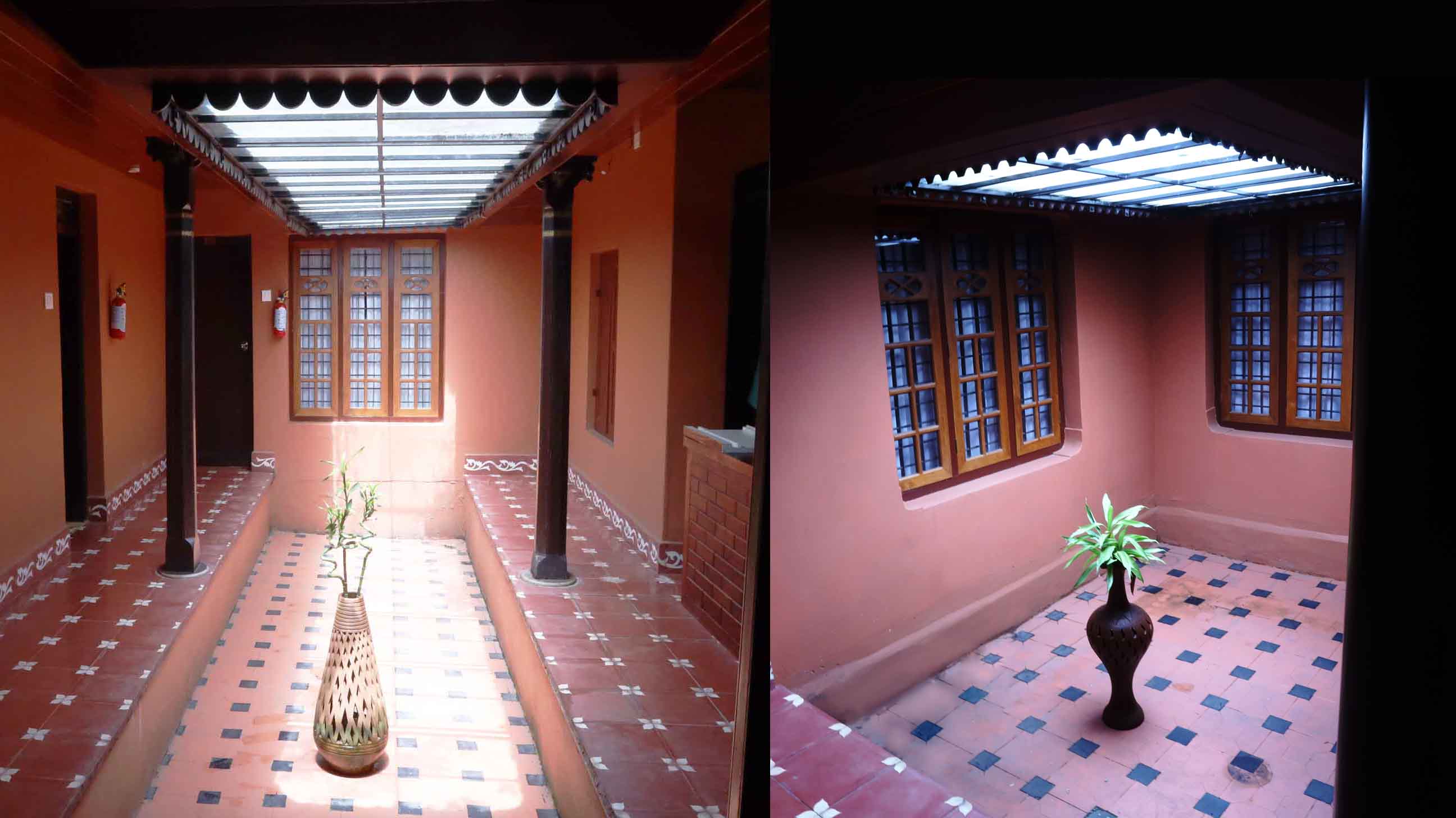 The heritage home has been built around Two 'Nalukettu' forming a 'Ettukettu'. The heritage has retained the adjoining the acnient 'kulikkadav' used by the 'antharjanams' of that ers to preserve the authentic feel. Trees like 'kanikonna' and 'koovalam' add to the scenic beauty and especially the 'koovalam' which has high medical values and is over '60' years old, preserved carefully.